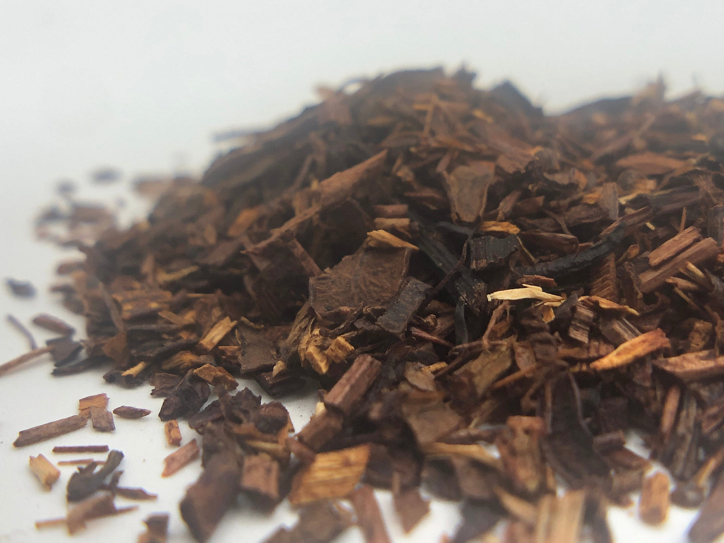 Honeybush is caffeine-free, rich in antioxidants and has a very low tannin content. It is grown in small areas of the western and eastern cape regions of South Africa. Its flavour is similar to rooibos except slightly sweeter and milder.